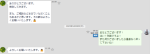 ※こちらが実際の相談LINEのスクリーンショット画像になります。